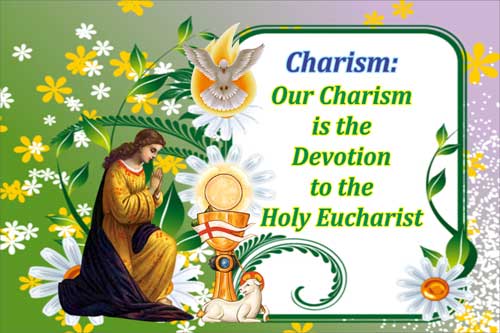 Our charism is the devotion to the Holy Eucharist. The core of this devotion is a deep personal attachment to Jesus in the Holy Eucharist.